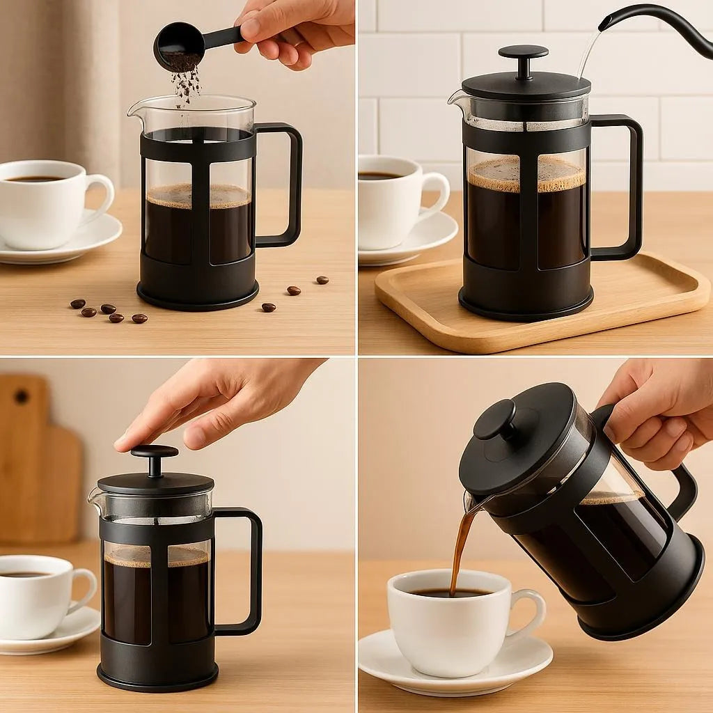A Cafeteira Prensa Francesa 600ml (French Press) é a escolha ideal para quem valoriza cafés especiais preparados de forma artesanal, com praticidade e sabor intenso. Com capacidade para até 6 xícaras, ela é perfeita para compartilhar momentos ou manter seu café sempre fresco ao longo do dia.