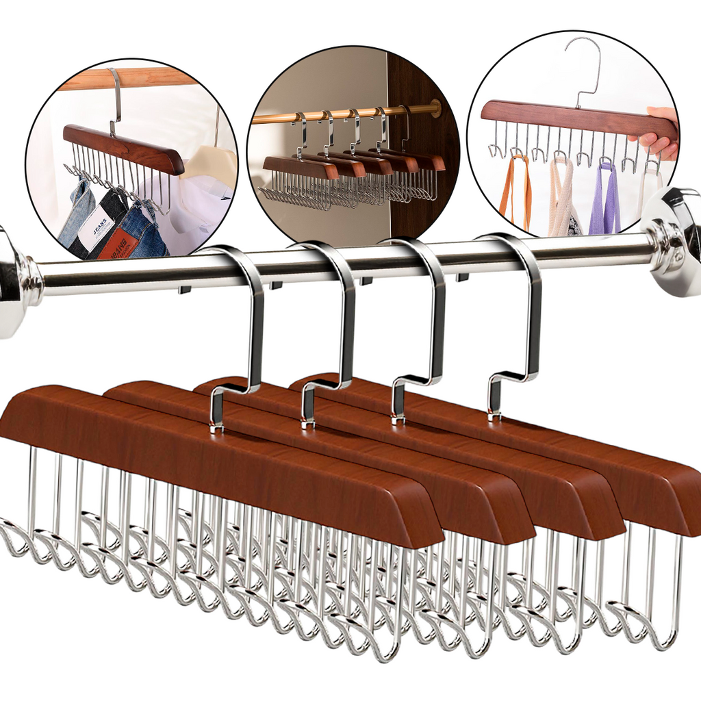 Roupeiro abarrotado e difícil de encontrar o que você quer? O Kit 2 Cabides Organizadores de Madeira da Ajeitaê é a solução ideal para você multiplicar o espaço do seu armário e dar um fim à bagunça com um toque de elegância.