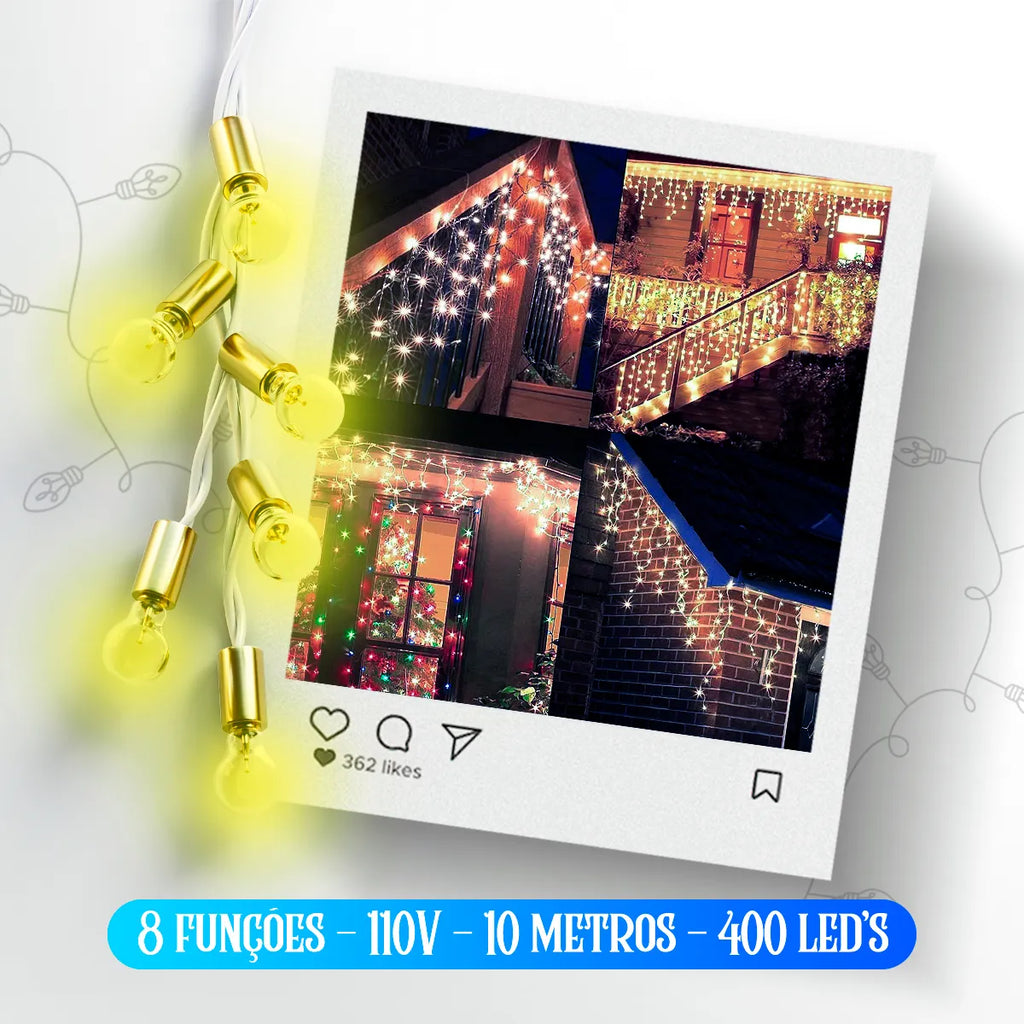 Iluminação tipo Cascata com 10metros e 400 leds com Conector M/F (Macho/Fêmea)